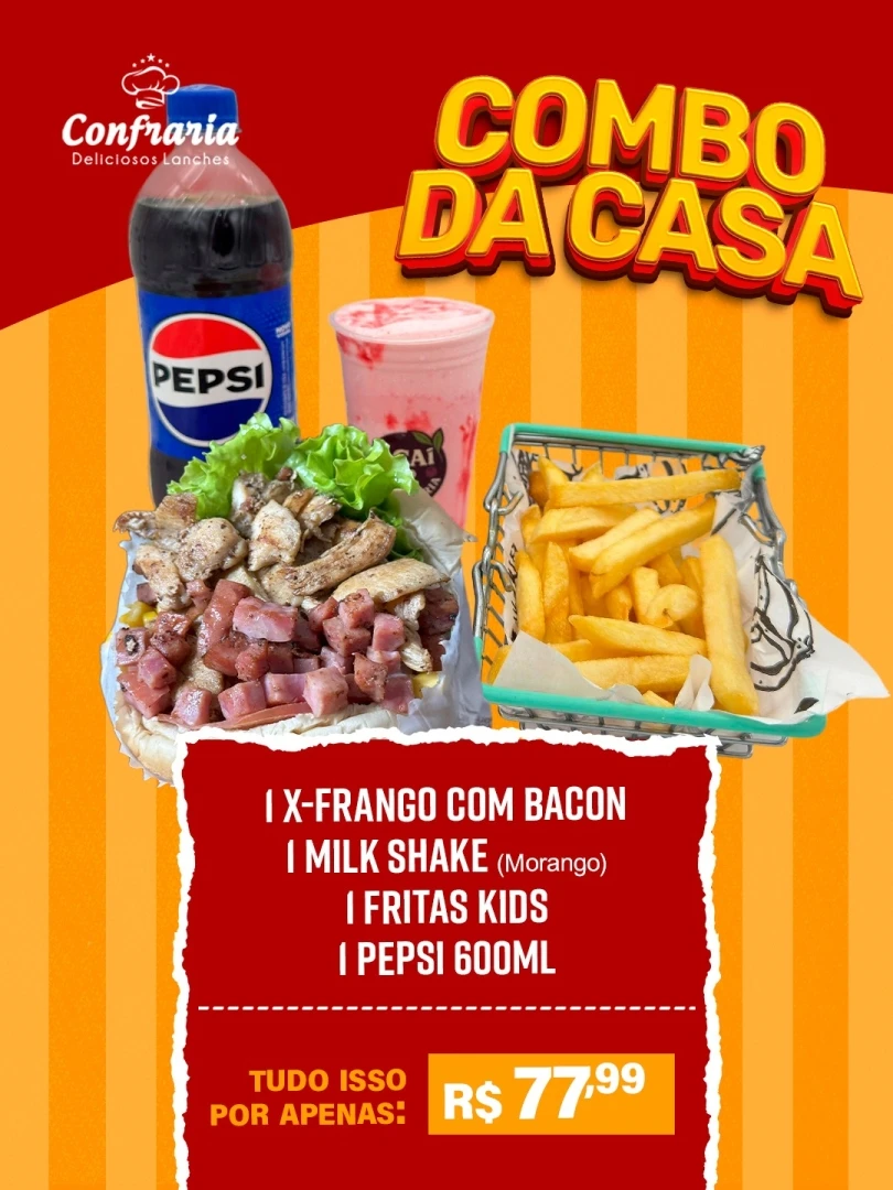 2 x-saladas, 1 misto com carne, 1 fritas mini, 1 refrigerante 2L.